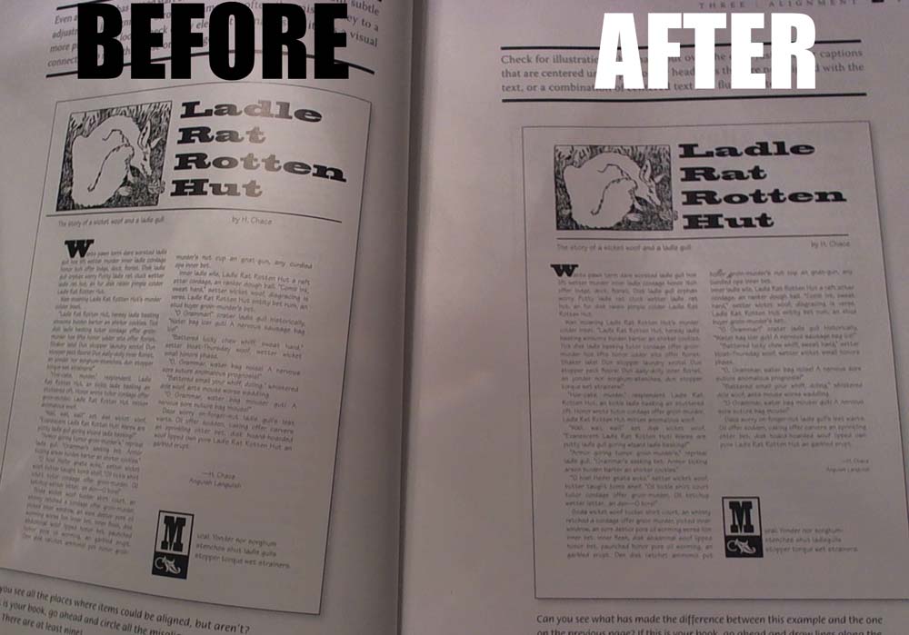 The purpose of alignment is to unify and organize the page. Unity is an important concept in design. Nothing should be placed on the page arbitrarily. Every element should have some visual connection with another element on the page.